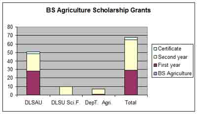 Scholarships are provided by the DLS-Philippines, thru De La Salle Araneta University, the DLSU Science Foundation, Taft and the Department of Agriculture (DA). For SY 2013-2014, the DA is supporting seven students.